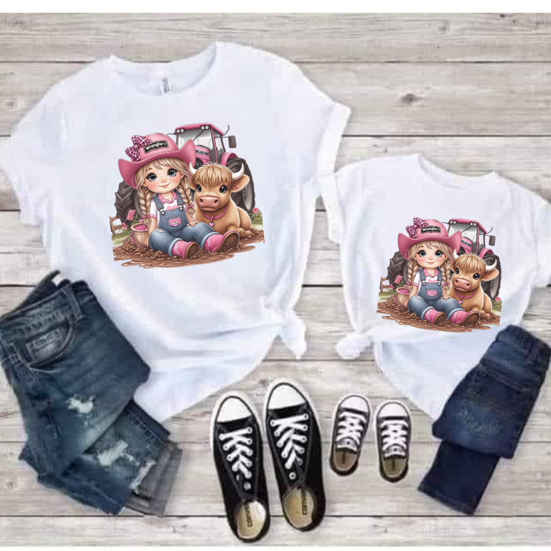 The matching cowgirl-themed designs feature charming elements such as cowboy hats, boots, lassos, and horseshoes, adding a touch of western flair to your outfits. The vibrant colors and playful graphics make these shirts perfect for family photoshoots, outings, or even just a day of play at home.