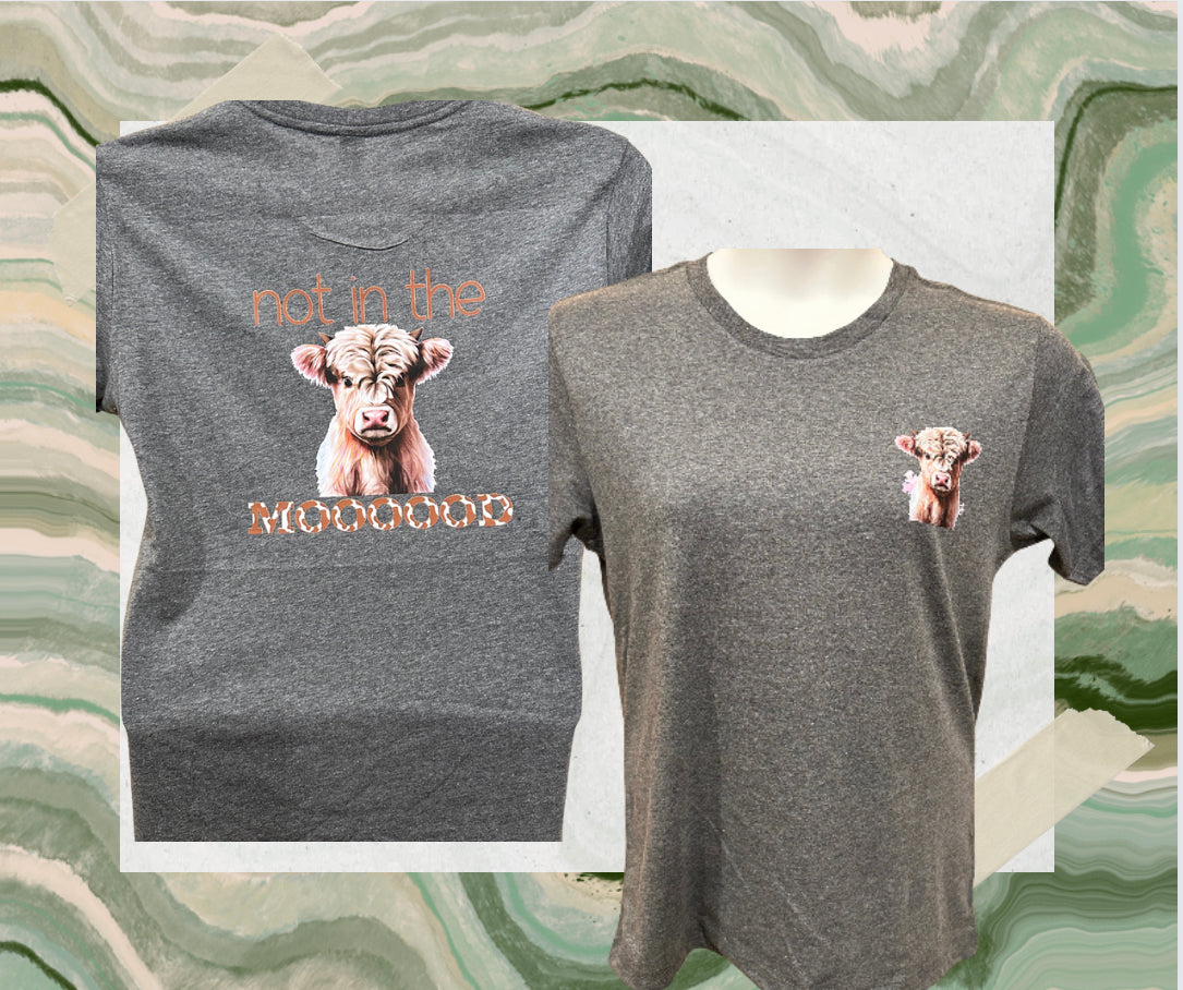 This shirt is available in a variety of sizes and colors, making it a versatile addition to your wardrobe. Whether you're looking to make a statement or just want to add a touch of humor to your outfit, the "Not in the Mooood" shirt is sure to do the trick. So why not add this fun and playful shirt to your collection today and show the world that sometimes, it's okay to not be in the mood!