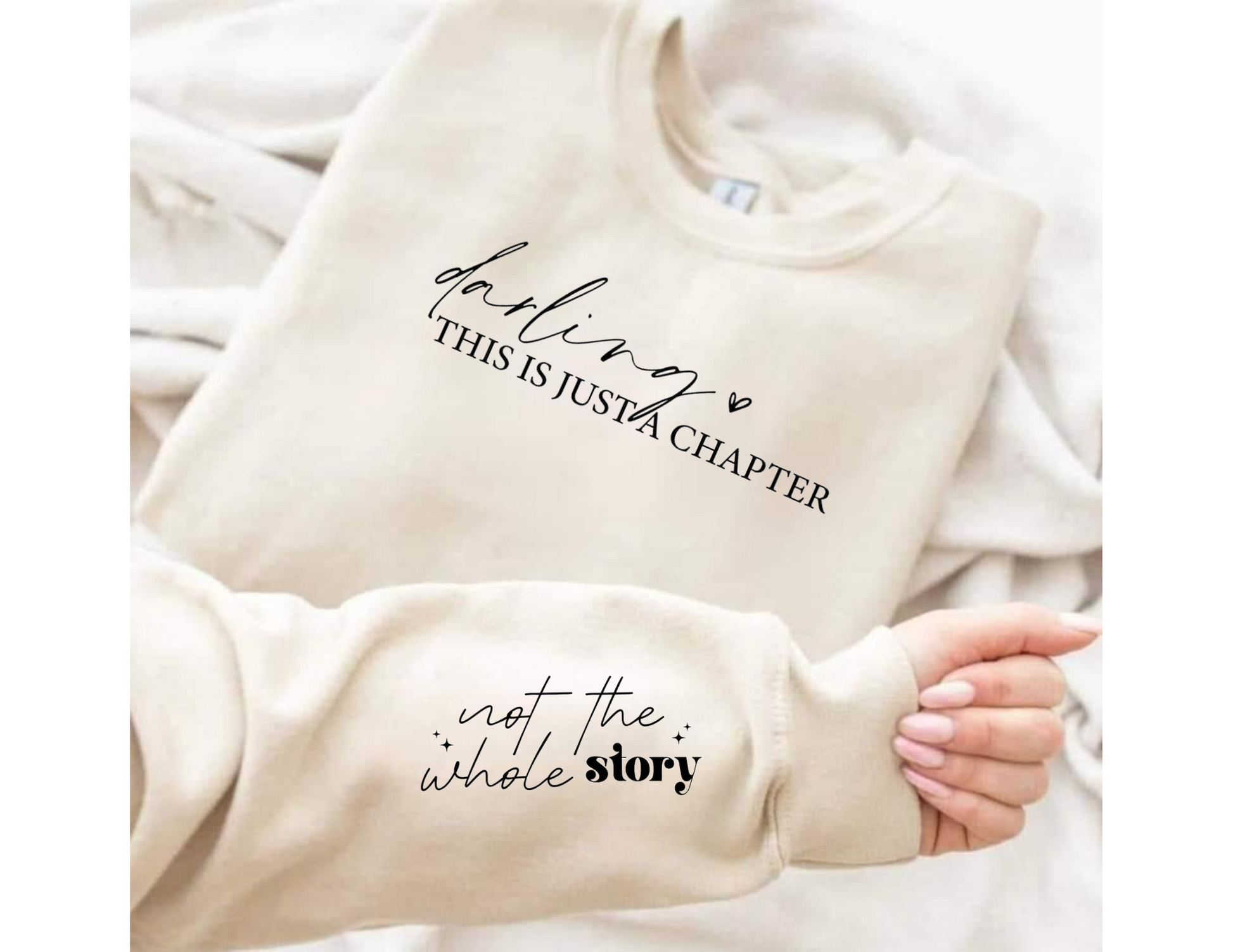 The "This Is Just A Chapter" sweatshirt is made from a soft and durable blend of cotton and polyester, ensuring a cozy feel and long-lasting wear. The design showcases a clean and modern aesthetic, with the phrase prominently displayed in a stylish font on the chest, along with a note on the sleeve.