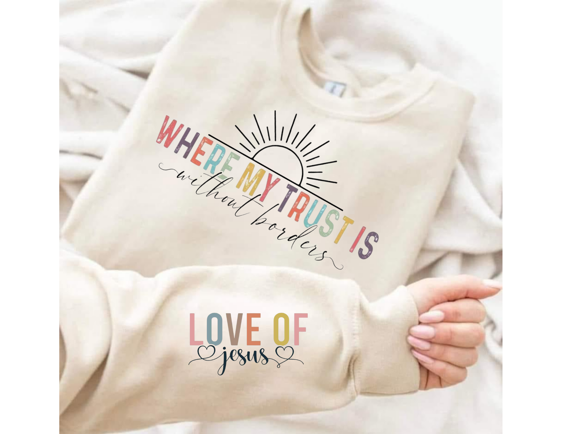 Embrace both comfort and expression with the "Where My Trust Is" sweatshirt, a distinctive addition to your wardrobe that invites contemplation and showcases your individuality.
